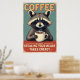 Esta adorable obra de arte muestra un travieso mapache sosteniendo una taza de café con la frase juguetona "Porque el robo de corazones toma energía". El diseño retro y los colores cálidos hacen de esta impresión una adición divertida y extravagante a la cocina, oficina o rincón café de cualquier amante del café. Perfecto para los amantes del mapache y de la cafeína, este encantador poster le da un toque de humor a su decoración. Es un regalo ideal para cualquiera que ame el café, los animales lindos y un poco de humor en su vida.