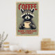 Póster Gracioso Raccoon Coffee Art