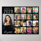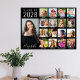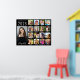 Cartel de fiesta de graduación negro y recuerdo con una colaboración de 17 fotos del graduado a través de sus años escolares y su nombre en una letra blanca elegante. Agregue sus leyendas personalizadas debajo de cada foto.