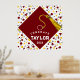 Poster de graduación con capucha de marrón y confeti. Para personalizar el texto de edición para añadir nombre y año.