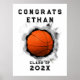 Póster de felicitaciones único con tema de baloncesto para la noche de senior y la graduación de jugadores de baloncesto. Edite el texto para agregar nombre y año.