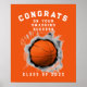 Póster de felicitación para fiesta de graduación de jugador de baloncesto o noche de seniors del equipo creativo de baloncesto para jugadores del equipo naranja. Para personalizar, edite el texto.