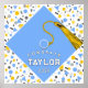 Creativa graduación felicita a la poster fiesta, con una gorra azul claro con una tassel de oro sobre fondo de confeti. Para personalizar, edite texto añada su nombre y año de clase superior.