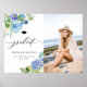 ¡Felicitaciones al graduado! Haz que tu celebración sea perfecta con este impresionante cartel de graduación de fotos personalizado, que incluye suaves hortensias azules de color de agua, polvorientos rosas azules y marfil, y exuberante vegetación. Añada la foto, el nombre, la escuela y el año de graduación de su graduado para crear una pieza personalizado que sea perfecta para decorar entradas, traseros, mesas de postre o cabinas de fotos. Este signo de bienvenida de graduación de hidrangea está disponible en otros productos.