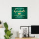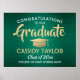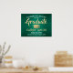 Añada un toque personalizado a una celebración de graduación universitaria o de secundaria con un elegante poster verde, dorado y blanco de 18"x24". Todo el texto es sencillo para el personalizar. El diseño presenta un fondo metálico de color verde falso en color rojo, una tapa de tablero de mortero de Relieve metalizado falso, una tipografía moderna y elegante y una caligrafía de escritura a mano. Tenga en cuenta que el oro es color impreso, no Relieve metalizado. Este cartel de la fiesta de graduación es una manera elegante de celebrar el día especial. ¡Felicitaciones al graduado!