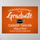 Añada un toque personalizado a una celebración de graduación de la universidad o de la escuela secundaria con un naranja personalizado, poster blanco y negro de 18"x24". La imagen y toda la redacción de esta plantilla de signo descargable son simples de personalizar, y los colores se pueden cambiar con la herramienta de diseño Zazzle. El diseño incluye una gorra de mortero, una tipografía clásica elegante y una caligrafía moderna y elegante. Este poster de graduación imprimible es una manera elegante de dar la bienvenida a amigos y familiares a una celebración especial de un día. ¡Felicitaciones al graduado!