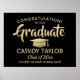 Añada un toque personalizado a una celebración de graduación universitaria o de secundaria con un poster personalizado negro y oro de 18"x24". La imagen y toda la redacción de esta plantilla de signo descargable son simples de personalizar, y los colores se pueden cambiar con la herramienta de diseño Zazzle. El diseño presenta un falso tapón de mortero de Relieve metalizado, una elegante tipografía clásica y una moderna caligrafía elegante. Tenga en cuenta que el oro es color impreso, no Relieve metalizado. Este poster de graduación imprimible es una manera elegante de dar la bienvenida a amigos y familiares a una celebración especial de un día. ¡Felicitaciones al graduado!