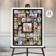 Easily upload 55 photos of your graduate through the years to display at the graduation party and entertain guests with memories. Personalized with their name and class year with the title GRADUATE and white graduation caps. Make several to display throughout the party and consider themes for each like Family, Friends, Sports, Interests and Hobbies, etc. The black background color can be changed to coordinate with party theme colors or school colors. The 24x30 size shown is a common frame size to display at the party and for a commemorative keepsake wall art piece for parents and grandparents after the party as well; other sizes available on the ordering page. PHOTO TIP: Crop/Size your photos into a square shape or with the subject in the middle BEFORE uploading for fastest, easiest results. Contact the designer via Zazzle Chat or makeitaboutyoustore@gmail.com if you’d like this design modified or on another product.