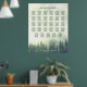 Este rústico y elegante cuadro de bodas presenta una escena de montaña con una colina cubierta por un bosque de pinos verdes. El título dice "por favor, encuentra tu mesa" en elegante caligrafía de escritura de encaje. Hay espacio para los nombres de la pareja y la fecha de boda a continuación. Esta tabla tiene una asignación de 290 personas en un arreglo tradicional de 10 personas por mesa. Perfecto para una boda al aire libre o destino de montaña.