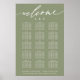 Gráfico de asientos de bienvenida del Boda de caligrafía verde de sabio blanco