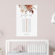 Rust Terracotta Florals Modern Script Single Table Boda Seating Chart Find Your Seat está en un elegante guión y el resto del texto que puede personalizar fácilmente. En la cima hay un ramo de terracota y flores de color crema de otoño.