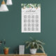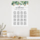 Se trata de un hermoso producto con una tabla de asientos boda con letra manual en diseño verde negro y eucalipto.