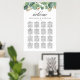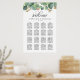 Se trata de un hermoso producto con una tabla de asientos boda con letra manual en diseño verde negro y eucalipto.