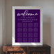 Este poster de la gráfica real de boda morado presenta una hermosa tipografía blanca sobre un sólido violeta para una recepción nocturna en invierno. El guión minimalista y el color en negrita hacen que la impresión se destaque de la multitud.