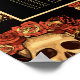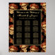 Este poster gótico boda recibe a sus huéspedes con un patrón de cráneos espeluznantes flotando en un abismo negro detrás de su monograma. Cada cráneo está adornado con rosas rojas para tu ocasión romántica en Halloween. Sus ojos vacíos y sin alma se contrastan marcadamente con la corona rosa de gótico y ramos de flores muertas. Agregue hasta 12 tablas de nombres de invitados a esta impresión.