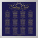 Este bonito cuadro de 12 asientos para bodas de mesa facilitará a los clientes la posibilidad de encontrar los asientos que se les han asignado en la recepción. Presenta un diseño sobrio y elegante, con un texto dorado sobre un fondo azul marino y un Relieve metalizado dorado de imitación floral vintage.
