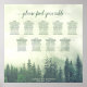 Esta tabla de asientos de 9 bodas de mesa tiene capacidad para 90 personas y tiene capacidad para 10 personas por mesa. El diseño es elegante y rústico, con una escena montañosa con un bosque de pinos verdes envueltos en niebla o niebla. Hay un sofisticado título de caligrafía de guión que dice "por favor encuentre su mesa", así como espacio para los nombres de la pareja y la fecha del boda. Es una buena forma de hacer que su recepción sea bonita y ayudar a sus huéspedes a encontrar el asiento adecuado.