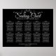 Haz que tu recepción de bodas sea hermosa con esta tabla de asientos. Presenta un diseño sencillo pero elegante con un texto gris plateado pálido sobre un fondo negro con un Relieve metalizado floral plateado. Este gráfico muestra las asignaciones de tablas para que sus invitados tengan facilidad para encontrar la tabla correcta.