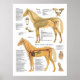 Anatomía esquelética del caballo que muestra los huesos y las articulaciones. Anatomía vascular con arterias y venas incluyendo el corazón y la circulación. El poster está etiquetado con descripciones.