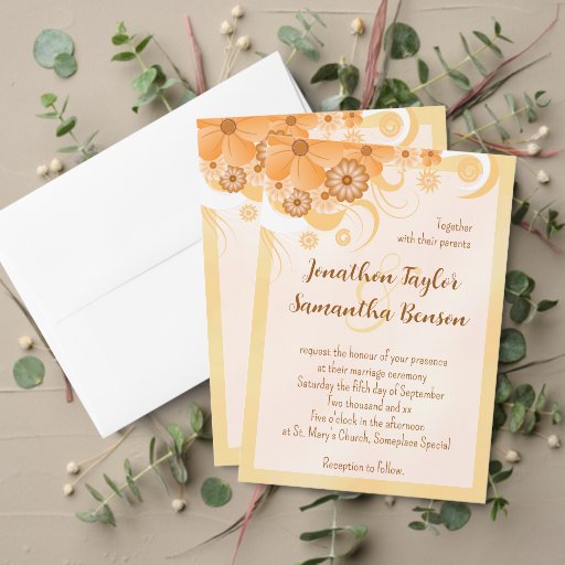 Ivory Peach and Gold Hibiscus Floral Wedding SetDiseñado por Marina