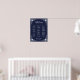 El fondo es azul marino, todo el texto es gris claro. La tabla de asientos alfabética es para un boda con colores marinos y plateados. Tiene un marco vintage ornamentado con una decoración falsa de plata en las esquinas. En la parte superior está la palabra Bienvenida, escrita en un gran y elegante guión caligráfico. Los nombres de la novia y del novio están escritos en la misma caligrafía, pero más pequeños, cerca de la frontera inferior. El resto del texto está en mayúsculas.
