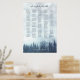 Póster Gráfico de asientos alfabéticos del bosque de pino