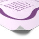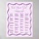 Guíe a sus huéspedes con facilidad utilizando este moderno Poster de tablas de asientos con Boda de ondulación violeta. Un fondo morado claro y un borde ondulado violeta violeta enmarcan la lista de invitados, mostrada en orden alfabético para una navegación sencilla. En la parte superior, "Find Your Seat" (Encuentra tu asiento) está resaltado en un guión morado escrito a mano, con tus nombres y la fecha de boda que se muestra a continuación. Funcional y elegante, este poster de la gráfica de asientos está disponible como una impresión profesional o descarga instantánea.