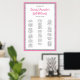 Póster Gráfico de asientos alfabéticos rosados plateados