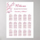 Clásico boda floral, poster de bienvenida con flores de cerezo en un fondo blanco y nombres de novios y novios en un guión tradicional y elegante. Lista de asientos con nombres personalizados para 150 invitados. Productos Bodas a juego disponibles.