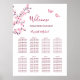 Flores de cerezo y dos bonitas mariposas sobre un fondo blanco. Señal de bienvenida boda con nombres de novias y novios personalizados en un elegante guión escrito a mano y una lista de asientos para 80 nombres de invitados. Para tu boda de primavera o boda de verano. Productos Bodas a juego disponibles.