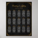 Gráfico de asientos de boda caligráfico agrupados por número de tabla. Este tamaño de 18 x 24 puede acoger hasta 15 mesas. Cambie el color de texto de la caligrafía cambiando el color de fondo en línea mediante las herramientas de personalización de zazzle. Coincida con el color del texto editable con el color de la caligrafía y obtendrá un gráfico de asientos boda de color personalizado que coincida con el tema de color.