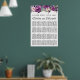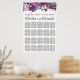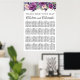 Hermosa tabla de asientos bodas florales color morado y rosa de color agua. Rosas de ciruelas profundas y flores rosas de color rosa se esconden en hojas verdes de salvia. Encuentra tu asiento y los nombres de la novia y del novio están en la parte superior. Es muy fácil cambiar el texto de la plantilla a los nombres de los invitados.