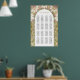 Los huéspedes podrán guiar sus asientos con un aire de elegancia histórica utilizando este cuadro inspirado en el Art Nouveau. El diseño presenta un arco ornamental elegante con detalles intrincados en tonos dorados, verde salvia y champán, enmarcando las columnas de nombres de invitados. El fondo es marfil suave, que contrasta sutilmente los acentos dorados y los delicados patrones botánicos. En la parte inferior, los nombres de las parejas honradas se presentan de forma elegante con una fuente clásica, complementada con la fecha de la ocasión especial. Este cuadro combina la funcionalidad con el encanto sofisticado de principios del siglo XX, perfecto para un boda de temática vintage.