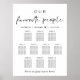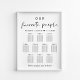 Moderno poster de tablas de asientos para bodas descargables para hasta 10 mesas con "Nuestra gente favorita" en un guión de moda y tipografía simple y sus nombres y fecha boda unidos por un corazón. Seleccione la opción de descarga digital para editar con cambios de último minuto e imprimir localmente.