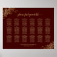 Esta carta de asientos ayudará a los huéspedes a encontrar las mesas que se les han asignado en la recepción de su boda. Presenta un diseño sencillo pero elegante con texto dorado sobre un fondo castaño profundo. El título está escrito en bellas letras de caligrafía de escritura y dice: por favor, encuentre su mesa. El diseño incluye un filigree de oro de Relieve metalizado floral de encaje en las esquinas. Tiene capacidad para 18 mesas con capacidad para 10 personas por mesa o 180 comensales.