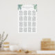 La tabla de asientos boda de moda tropical incluye hojas de palmeras tropicales en color verde agua. Hay 16 mesas con capacidad para 10 ó 160 comensales.