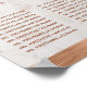 El gráfico de asientos de boda tiene 20 mesas. El fondo es de mármol blanco. Los bordes superior e inferior son de cobre metálico falso, el superior forma un ángulo, de modo que el fondo de mármol forma un pentágono irregular. Los nombres de los novios están escritos en una elegante letra caligráfica. Todo el texto tiene un color marrón rojizo como el cobre. El texto "¡Por favor, encuentre su asiento!" está curvado.