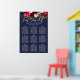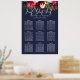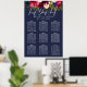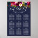 GRÁFICO DE ASIENTOS DE FLORES DE ACUARELA, ROSA SUAVE, BORGOÑA Y NAVY. Color de fondo personalizable.