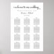 Este sencillo cuadro vertical de asientos en blanco y negro es perfecto para un boda elegante y clásico. Puede cambiar el color de fondo. Simplemente haga clic en el enlace personalizar adicional, que se muestra bajo el área de personalización de texto a la derecha, y elija el fondo de color personalizado. Este poster muestra la organización de los clientes sentados al lado de las mesas y tiene espacio suficiente para entre 90 y 100 comensales. Haga espacio para más (o menos) invitados haciendo clic en el botón "personalizar" y disminuya o aumente el tamaño del tipo de letra.