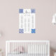 Traiga el encanto atemporal italiano a su ducha de novias con este elegante gráfico de asientos con un hermoso diseño de inspiración maiólica. Perfecto para eventos de temática italiana o celebraciones mediterráneas, este gráfico combina arte clásico con funcionalidad moderna. Los complejos tonos azules y blancos evocan la esencia de la cerámica tradicional italiana, añadiendo un toque refinado a la decoración. Con todo personalizable, esta tabla de asientos se puede adaptar a su estilo y lista de invitados, asegurando que se complemente perfectamente con su día especial. Convierta este lujoso diseño en una impresión duradera, ideal para crear una experiencia ininterrumpida y elegante.