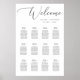 Bienvenido a sus huéspedes bodas con este clásico cuadro con caligrafía moderna. Este poster boda tiene capacidad para 120 personas. Haga espacio para más (o menos) huéspedes haciendo clic en el botón "personalizar" y disminuya o aumente el tamaño de la fuente. También se pueden eliminar tablas adicionales. Además de la ubicación de cada invitado, personalice este cartel con los nombres de la novia y el novio y la fecha del boda.