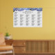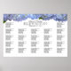 Hermoso poster de la tabla de asientos del boda de hidrangea azul. Borde floral grande a lo largo de la parte superior de este poster de gran tamaño, con información de asientos en secciones. Asista a los invitados alfabéticamente o por número de tabla / nombre según elija. Véalo con pez estrella debajo.