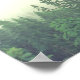 Esta elegante tabla de bodas tiene mesas para 60 invitados a diez personas por mesa. Presenta un diseño rústico y hermoso con un bosque de pinos verdes envueltos en niebla o niebla. El título de la caligrafía de la escritura de lacy dice "por favor, encuentren su mesa". Hay espacio para los nombres de la pareja boda así como la fecha boda.