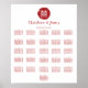 Sencilla y elegante, esta tabla de bodas es una forma sencilla de dirigir a los huéspedes bodas a sus asientos asignados. El diseño presenta un círculo rojo que rodea el símbolo blanco de doble felicidad. El texto coincide con el color del círculo y es completamente personalizable. Este gráfico de asientos está diseñado para listar a sus invitados alfabéticamente, pero puede cambiarse fácilmente para que se base en el número de la tabla. ¡Felicitaciones a los recién casados!
