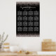 Este deslumbrante boda o un asiento especial para eventos seguro que acompañará a sus huéspedes. Cuenta con orbes brillantes de luz plateada que se desvanecen en un sutil fondo negro. Perfecto para un boda elegante y elegante. Personalizable completo con los nombres de sus invitados.