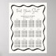 Dirija a sus huéspedes con estilo con este Poster de la tabla de asientos con Boda de marco ondulado moderno y crema negra. Un fondo crema y un borde ondulado negro ondulado enmarcan la lista de invitados, cuidadosamente organizados en 12 tablas con nombres listados debajo de cada una. La frase "Find Your Seat" (Encuentra tu asiento) se destaca en la parte superior en un guión negro escrito a mano, mientras que sus nombres y la fecha de boda aparecen justo debajo para un toque personalizado. Combinando estilo retro y moderno, este poster de tablas de asientos boda está disponible como una impresión profesional o como una descarga digital conveniente.