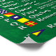 Este poster muestra el símbolo alfanumérico con su correspondiente marca de código seguido de la pronunciación fonética, el código morse y la definición del indicador de código.