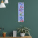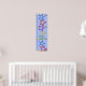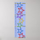 Las estrellas coloridas miden el crecimiento del niño con un fondo azul claro. Líneas amarillas a 2 pies (medir desde el suelo hasta la fijación correcta), 3, 4 y 5 pies. Pulgadas marcadas entre líneas como 1-12 con 12 (en línea amarilla).