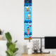 Un adorable velero náutico mono sentado en una cubierta de madera con gaviota y cangrejo. Al fondo, un faro rojo y blanco, un bonito pájaro en un velero, olas del océano y un cielo estrellado azul marino. Gráficos de PixelPaperPrints y DigitalCurio