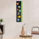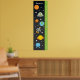 Manténgase al tanto de la altura de su hijo con esta divertida gráfica de crecimiento. Presenta un buque de cohetes en el espacio ultraterrestre con planetas, estrellas, OVNI y Aliens. Se puede personalizar con el nombre de su hijo. Algunos elementos Buena y Diversión.